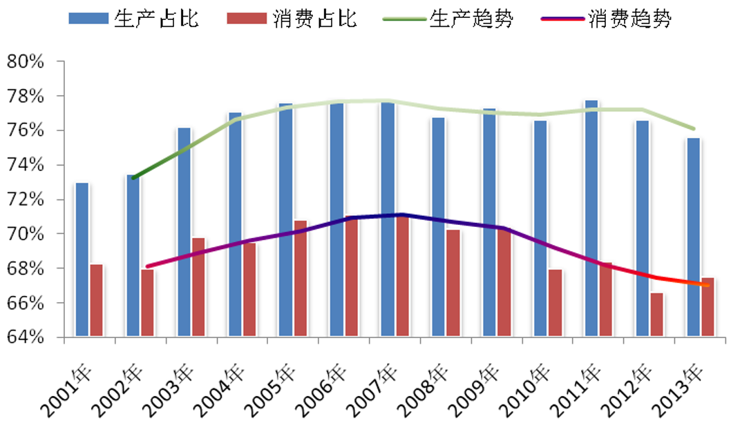 2010年我国煤炭消费在一次能源消费中所占比例为68.0%