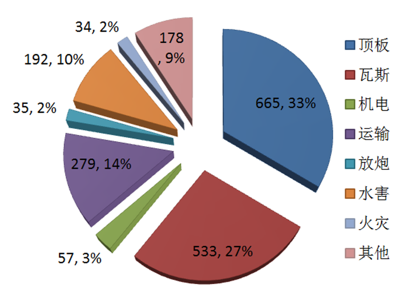 我国煤矿各类事故死亡人数所占比重(2011年数据)