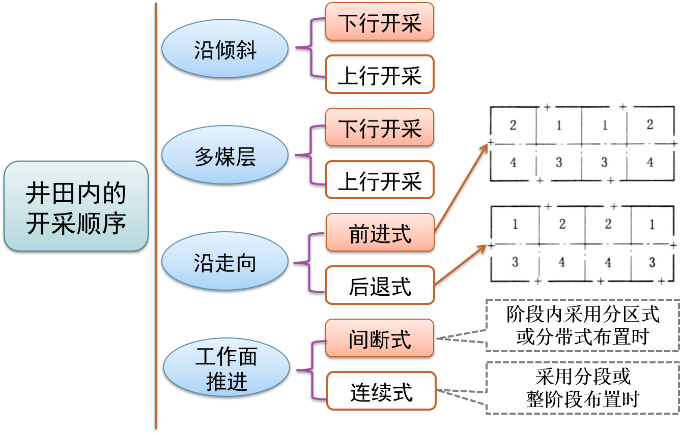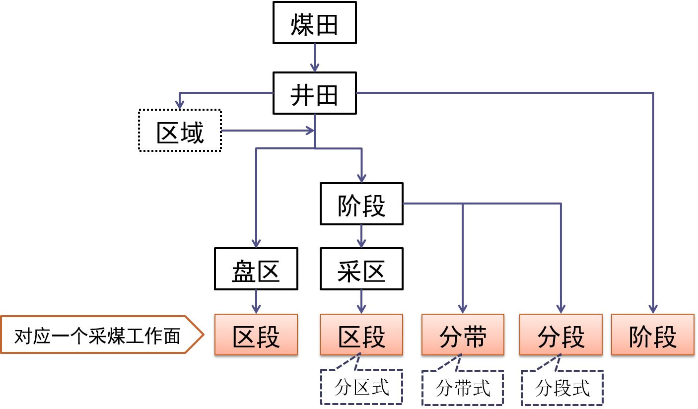 对一些特大型矿井,采用了分区域开采的办法。将整个井田划分成若干个区域,每个区域相当于一个小井田,进一步划分成阶段、盘区等。