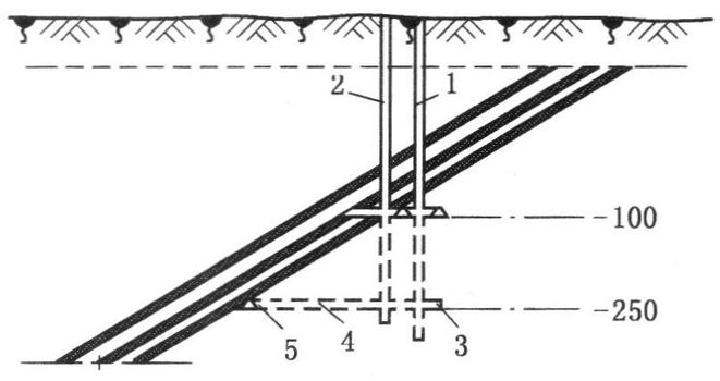 1-主井;2-副井;3-暗立井;4-暗斜井