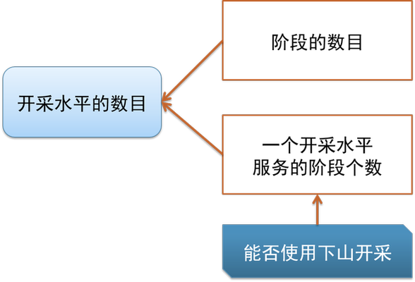 开采水平的数目首先要解决能否采用下山开采的问题。再确定阶段的数目和一个开采水平服务的阶段个数。