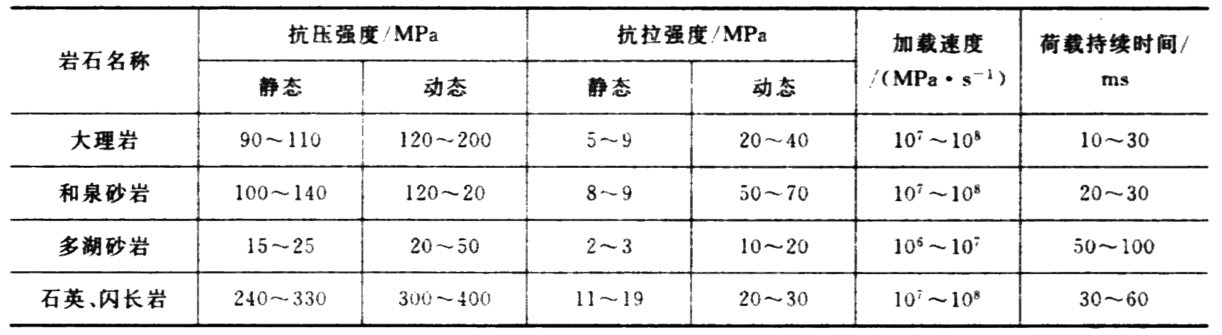 岩石在冲击荷载作用下,无论是抗压强度还是抗拉强度都比静荷载作用下要大。