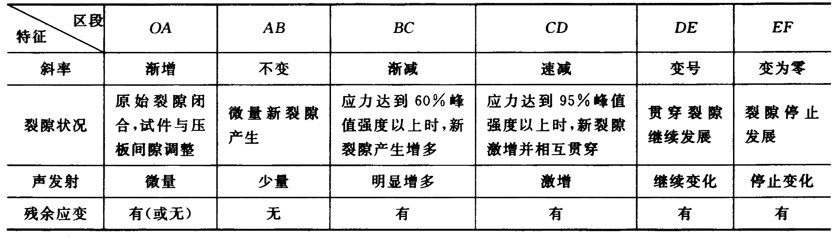 OA  段 :微裂隙及裂隙闭合阶段。又称裂隙压密闭合阶段。