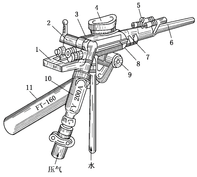 8-连接螺栓;9-气腿连接轴;10-自动注油器;11-气腿