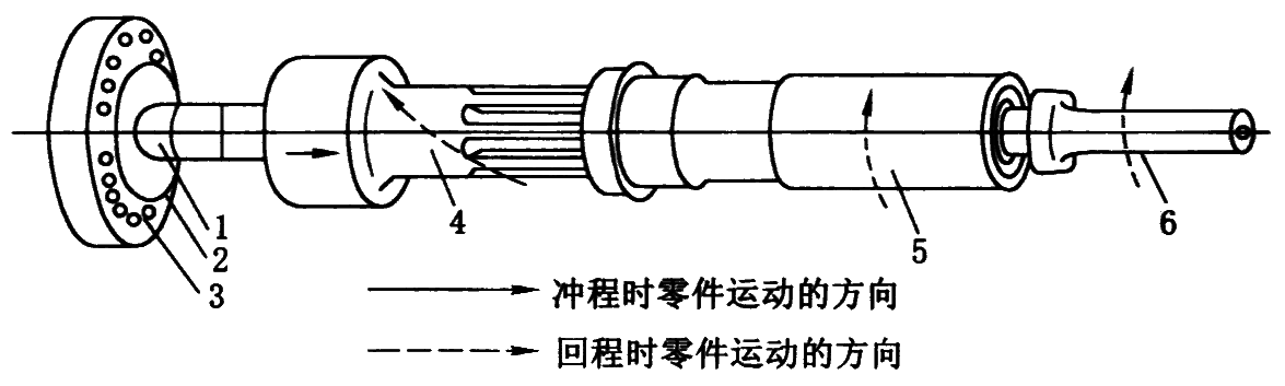 钎杆 3 后部的钎尾 6 插入凿岩机转动套筒内,直接承受冲击力与回转力矩。
