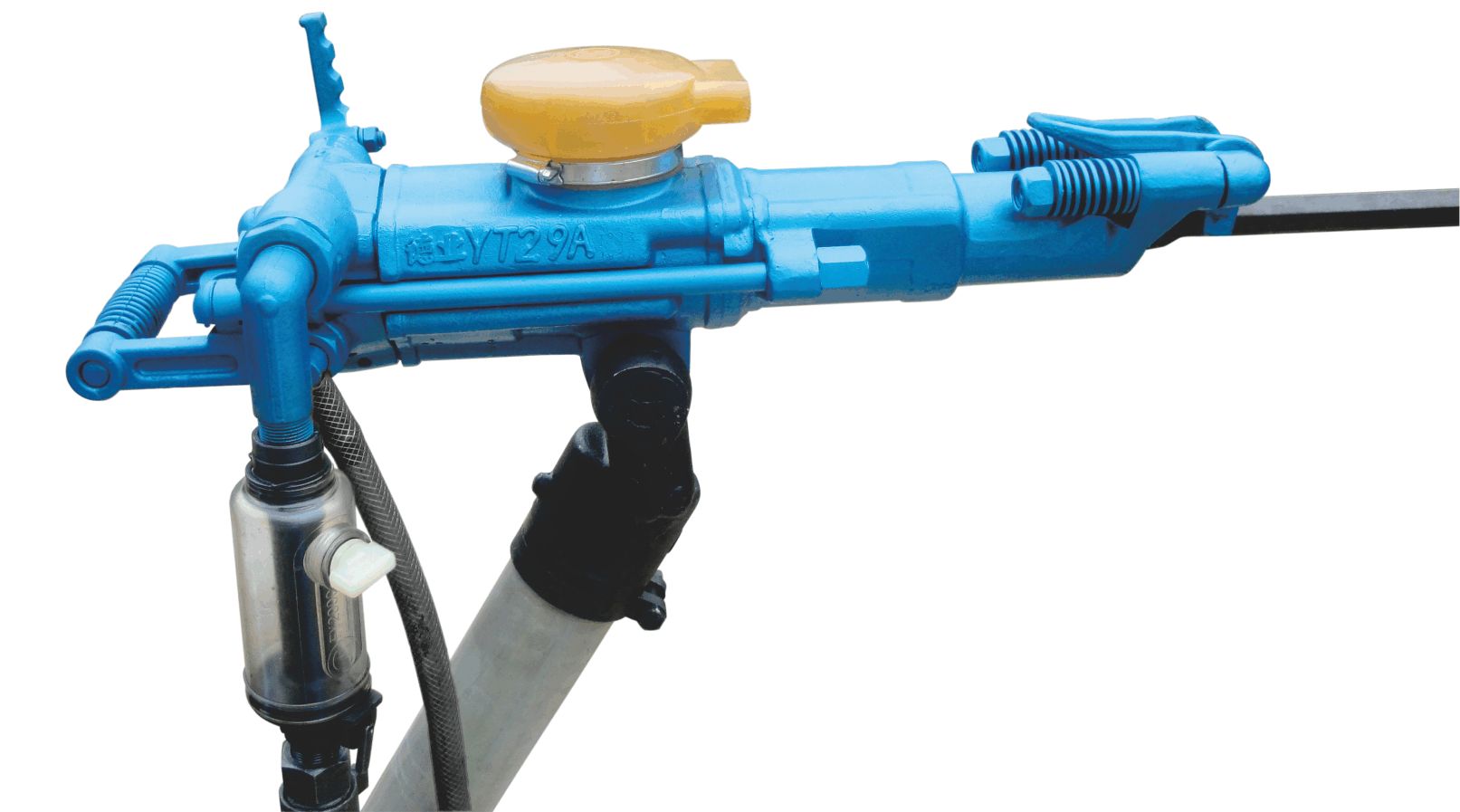 气腿式凿岩机的机身重量由气腿支撑,减轻了体力劳动,应用比较广泛。