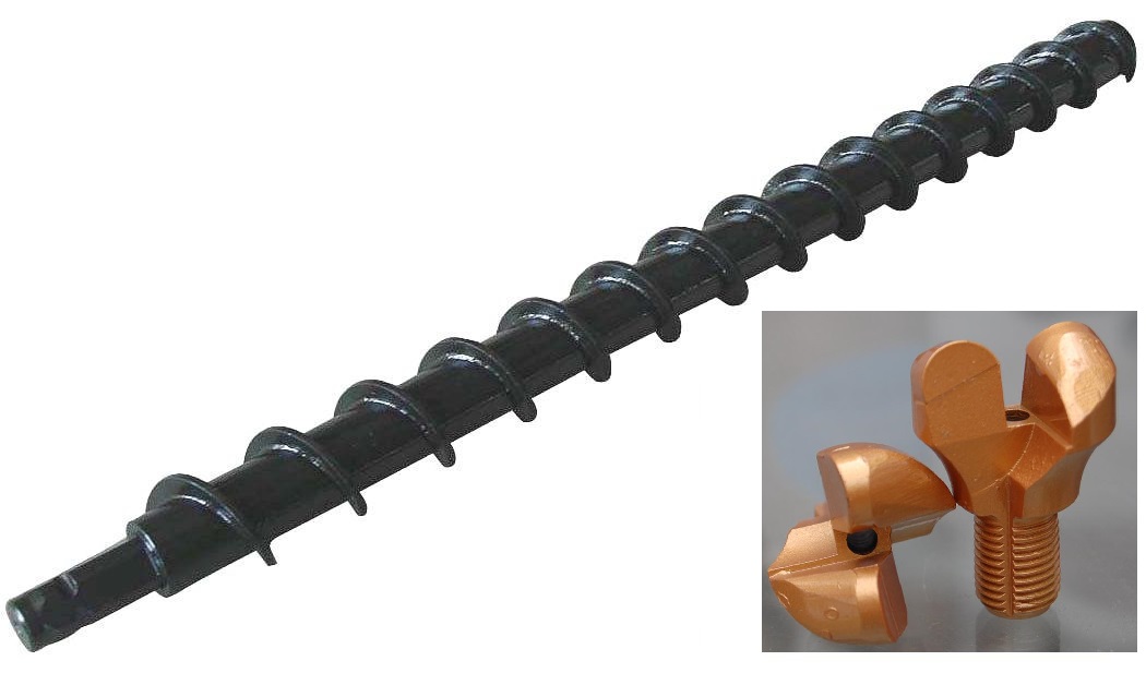 麻花钻杆用菱形断面或矩形断面T7、T8钢加热状态扭制而成,螺纹方向与钻头旋转方向一致。钻杆除了传递轴向压力和扭矩外,还能利用螺旋沟槽排出钻粉。