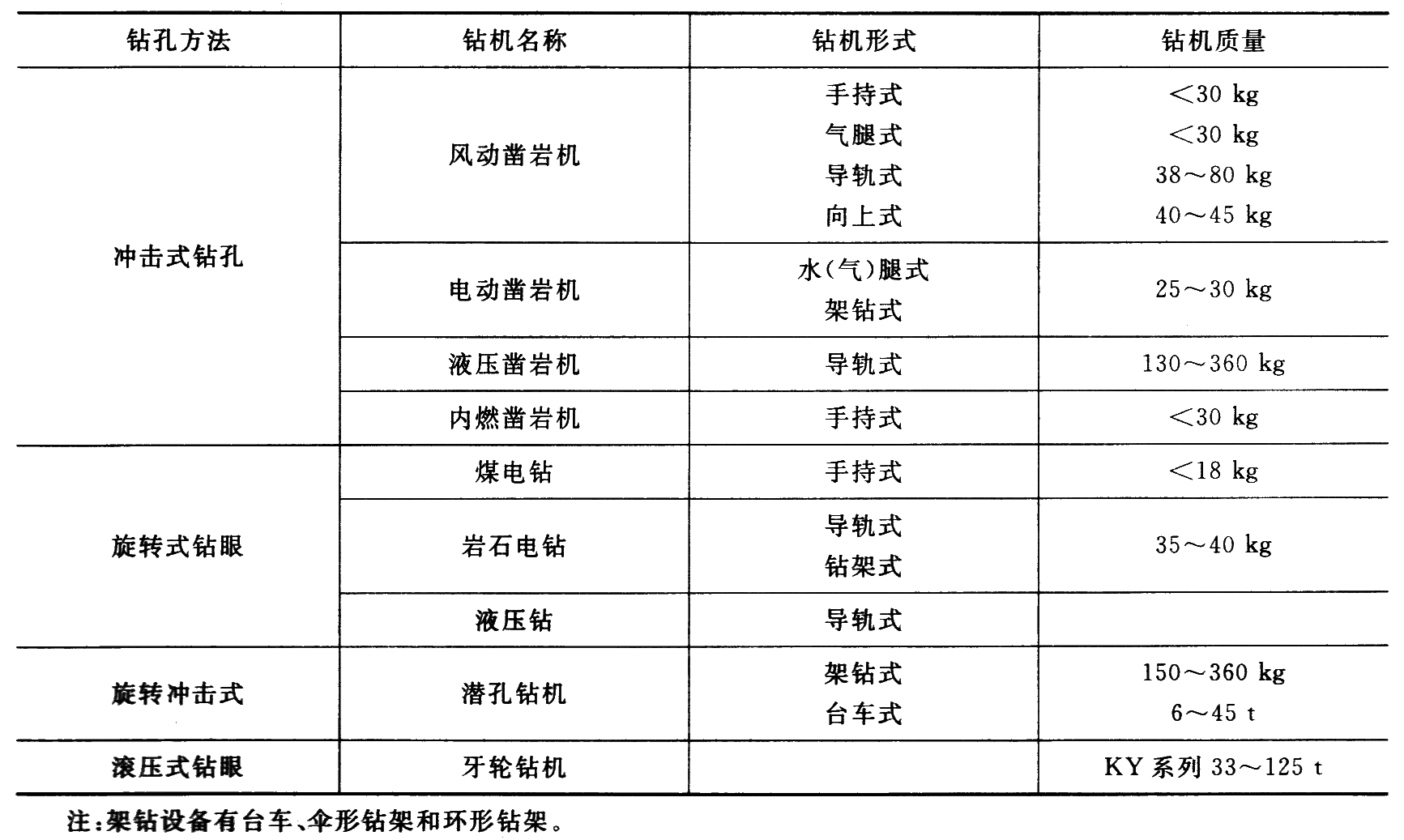 井巷施工首先要破碎岩石,常用的破岩方法有机械破岩和爆破破岩两种。目前煤矿爆破破岩仍占较大的比例(约40%)。爆破效率的提高在很大程度上依赖于凿岩设备(机具)的发展。