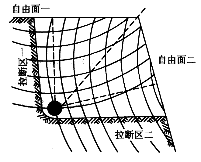 如果自由面不止一个,则应力波在各个方向都能形成反射,也都能形成由自由面向药包中心的拉断破坏区。因此增加自由面就可使炸落单位体积岩石的炸药消耗量降低,而且岩石的块度比较小而均匀。