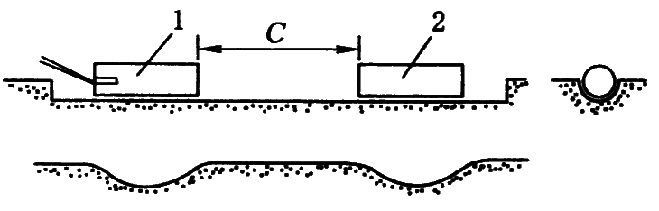 1—主动药包;2—殉爆药包;C—殉爆距离