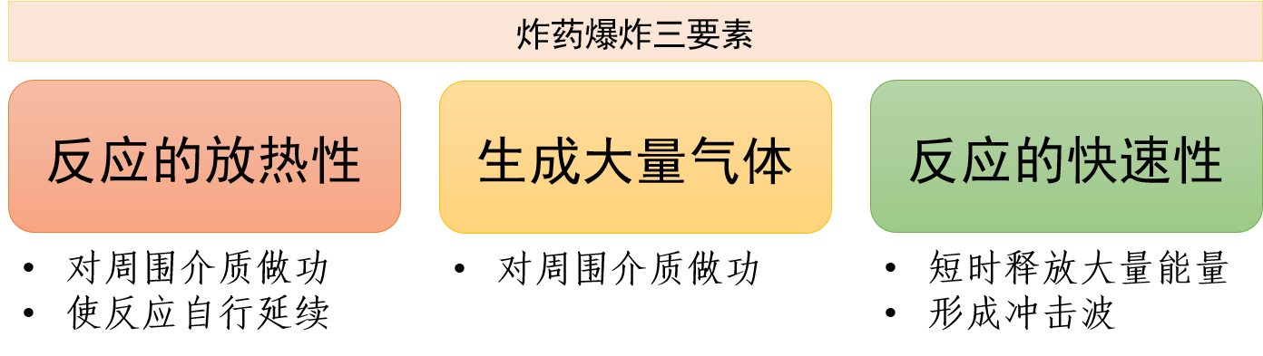 当化学反应具备上述 3 个条件时,反应产物就能处于高温、高压、高速的状态,对周围介质有巨大的做功能力和破坏作用。