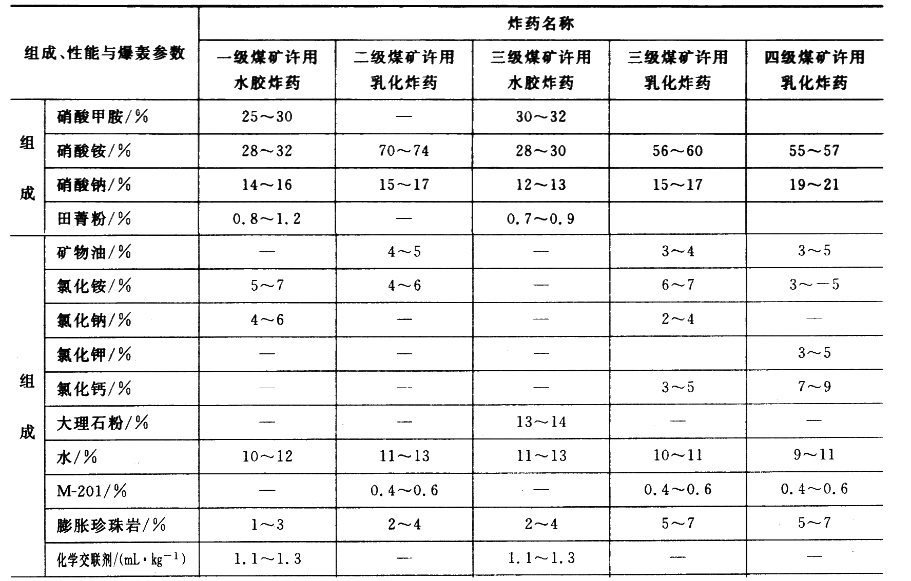 工业炸药几乎全部都是混合炸药。为了改善混合炸药的爆炸性能,在配方中经常加入一些单质猛炸药。我国矿用炸药是以硝酸铵类炸药为主,分为煤矿安全炸药和非安全炸药。