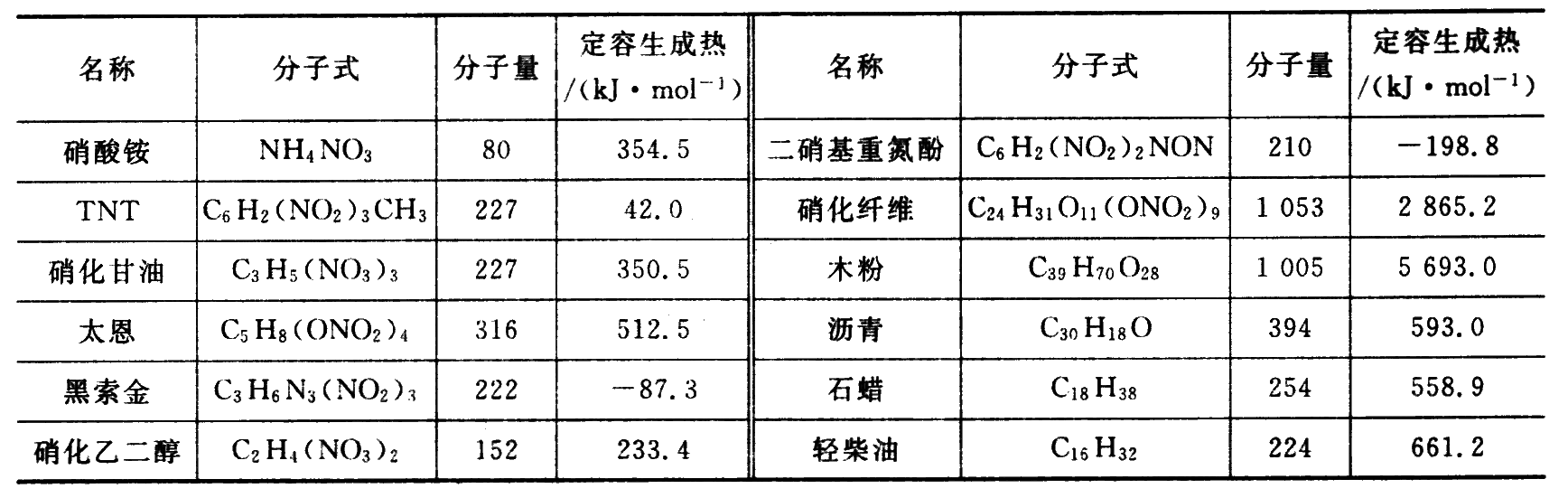 炸药中的含氧量能否将炸药中C、H元素充分氧化,直接影响着炸药能量的充分发挥。若不能充分氧化,则放热量较少,容易生成CO和NO有毒气体。