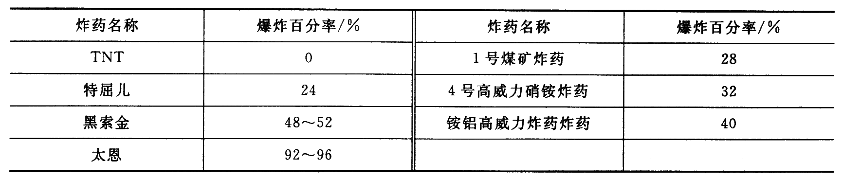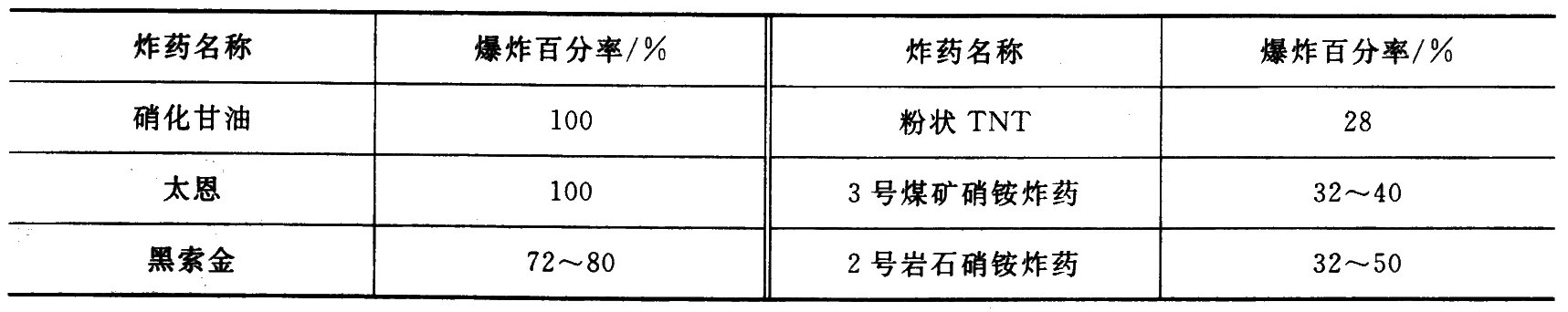 单质炸药常用起爆它所需要的最小起爆药量来表示。混合炸药用殉爆距离来表示。
