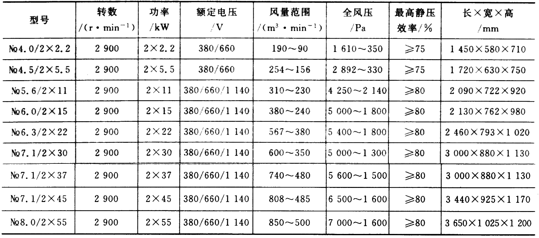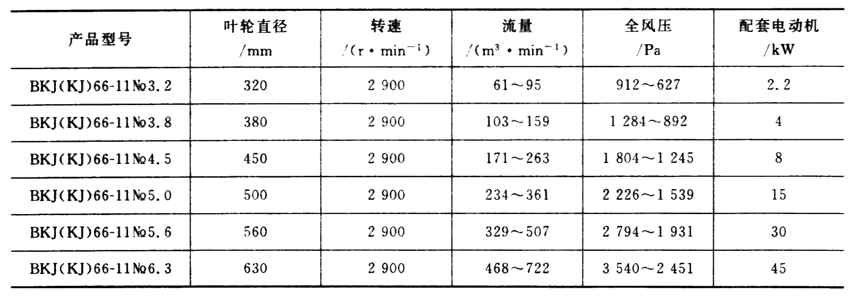 局部通风机是掘进通风的主要设备,有轴流式和离心式 2 种,常用轴流式。常用的普通轴流式通风机是 BKJ 系列,如下页表中的 BKJ66-11型。