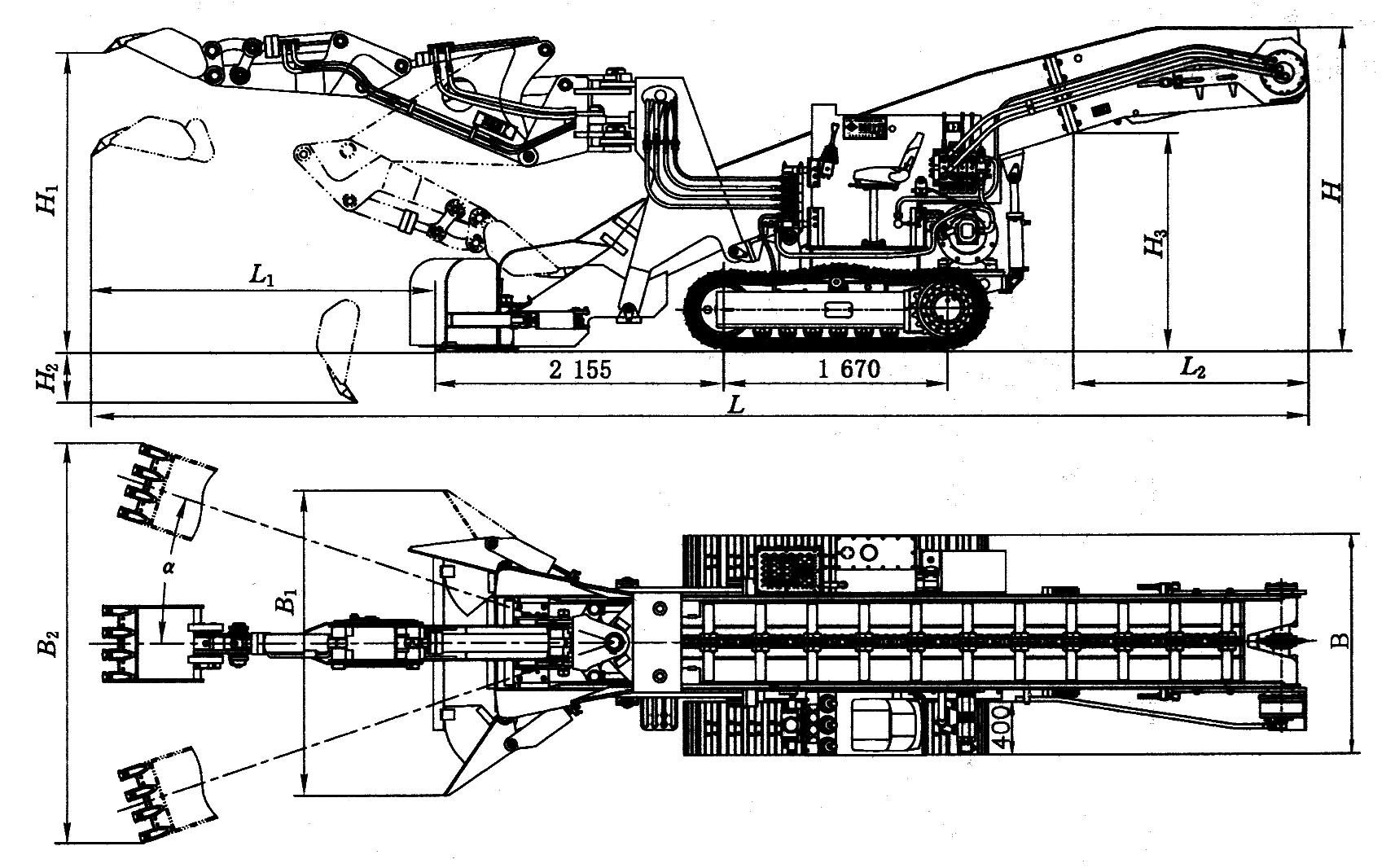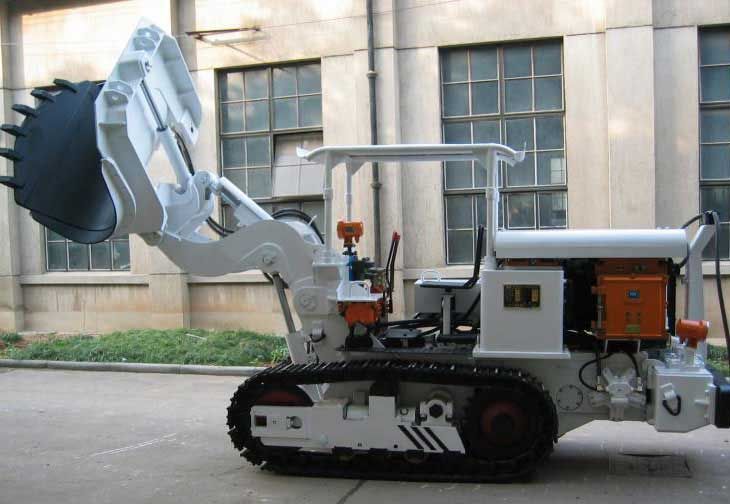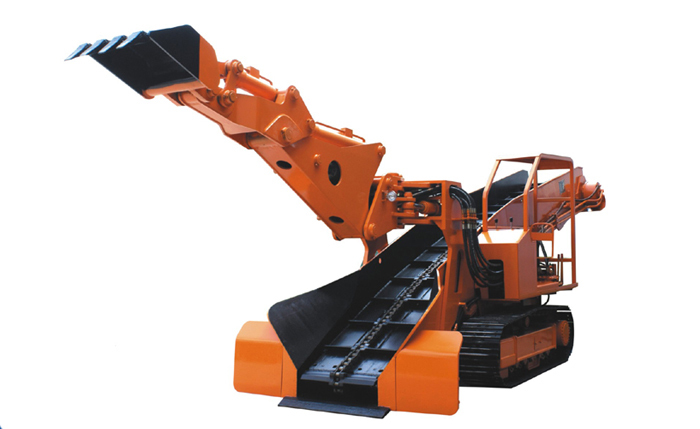 这类装载机装载宽度大,生产率高,机器高度低,产生粉尘少,但软岩巷道对履带行走不利,适合于硬岩巷道。