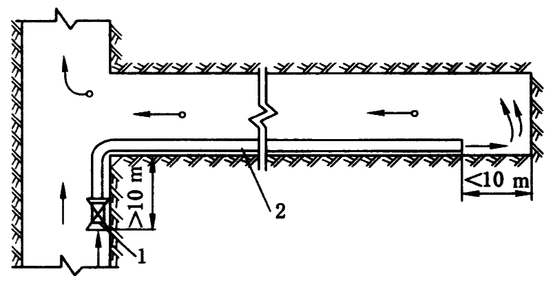 1—压入式局部通风机;2—风筒;3,4—抽出式局部通风机
