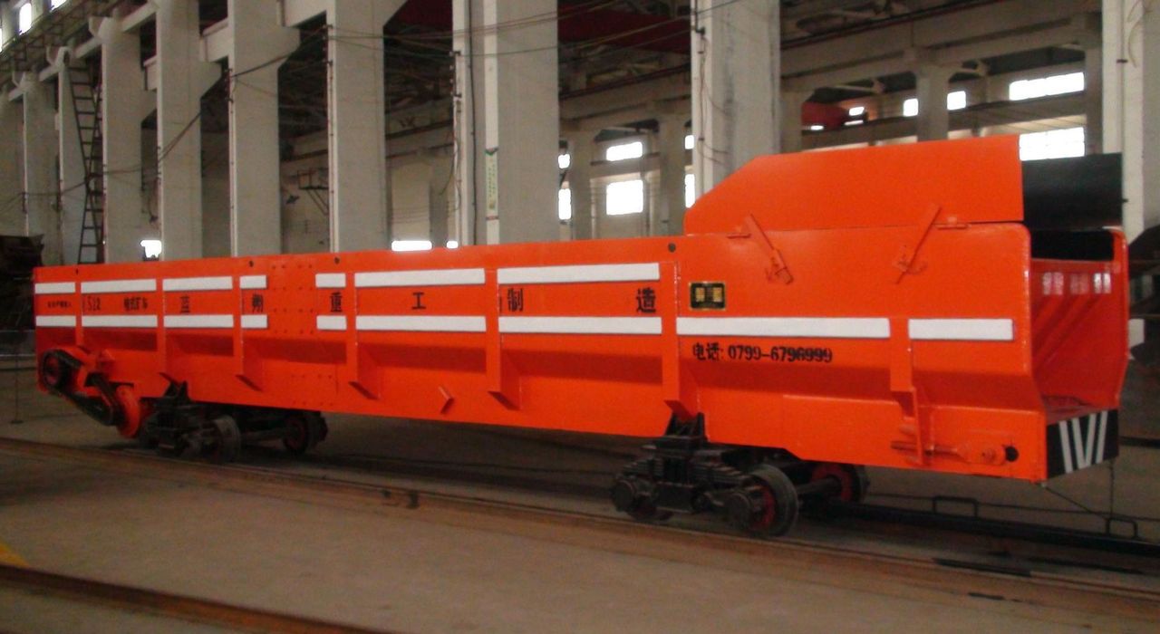 梭式矿车是一种大容积的矿车,也是一种转载设备,由在车厢底板安设运输机的槽形车厢和行走部分组成,用电机车牵引在轨道上行驶。矿料石砟从车厢的装砟端装入,刮板或链板运输机将矿料石砟转载到卸砟端;待整个梭车装满,由电机车牵引至卸砟场,然后再开通运输机将矿料石砟自动卸掉。这种矿车车厢容积较大,效率高,因往返如穿梭般频繁而得名。