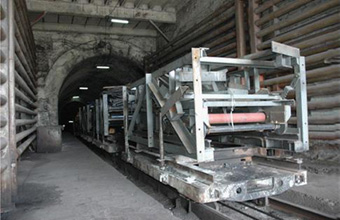 利用转载设备可大大改进装运工作,提高装载机的实际生产率,使装载运输连续作业,有效地加快装运速度。常见的转载设备有胶带转载机、斗式转载车和梭式矿车等。
