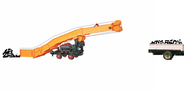 这种装载机前端的铲板上设有一对蟹爪,在电机或液压马达驱动下,连续交替耙取矸石,矸石经刮板输送机运到机尾的胶带输送机上,而后装入运输设备。