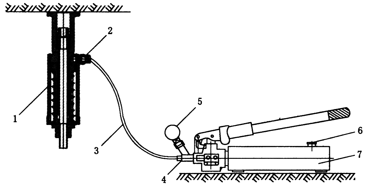 4—三通接头;5—压力表;6—注油口;7—液压缸