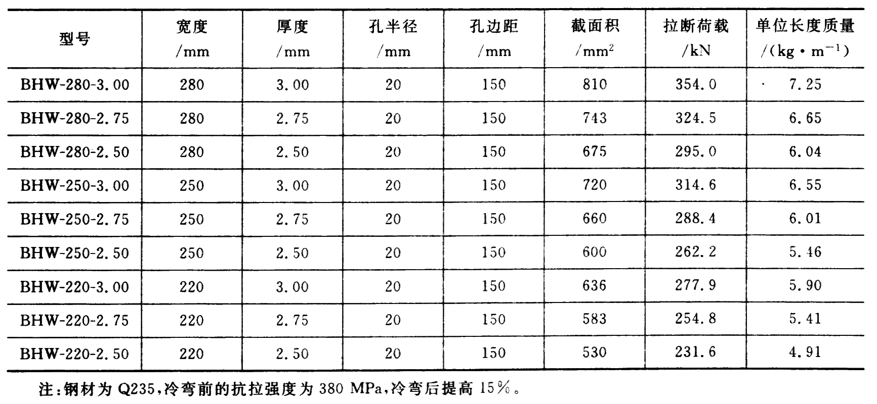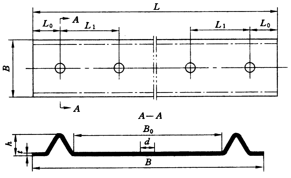 B0—钢带槽宽;d—钢带孔直径;h—钢带高度;t—钢带厚度