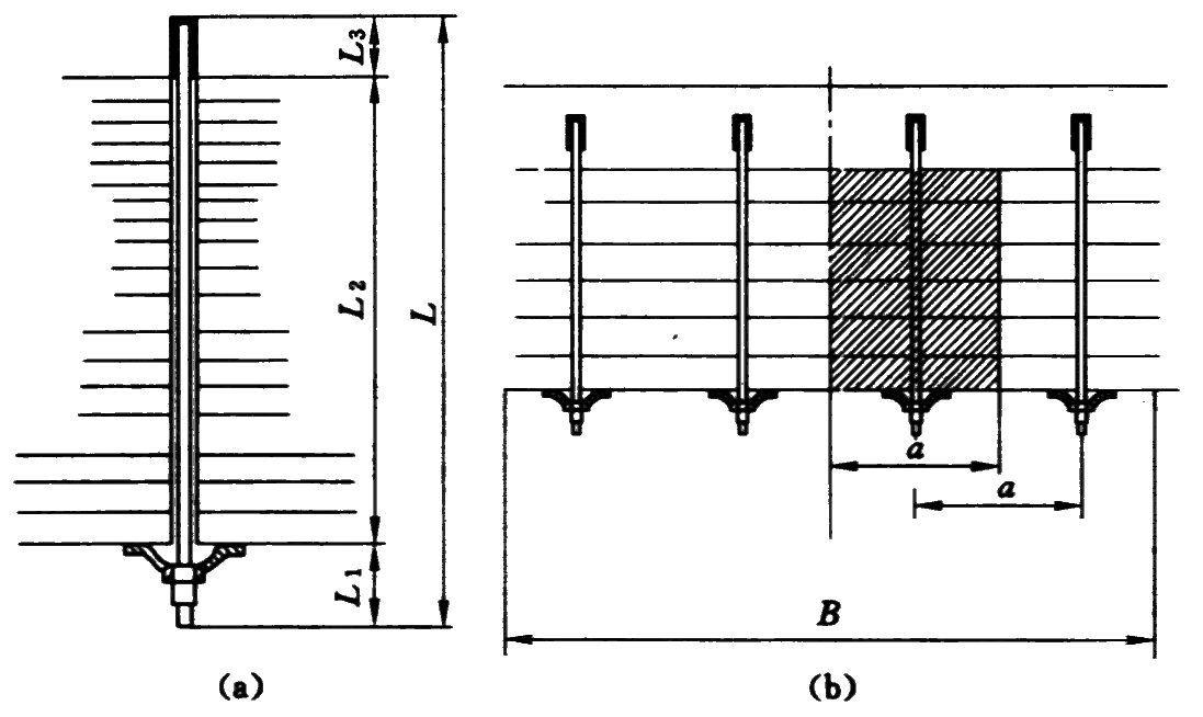 (a) 锚杆长度组成;(b) 支护参数计算图