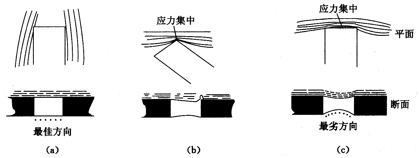 (a) 巷道平行于最大水平主应力;(b) 巷道与最大水平主应力呈45°角;(c) 巷道与最大水平主应力垂直