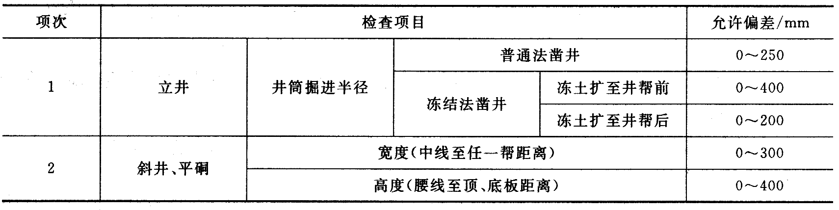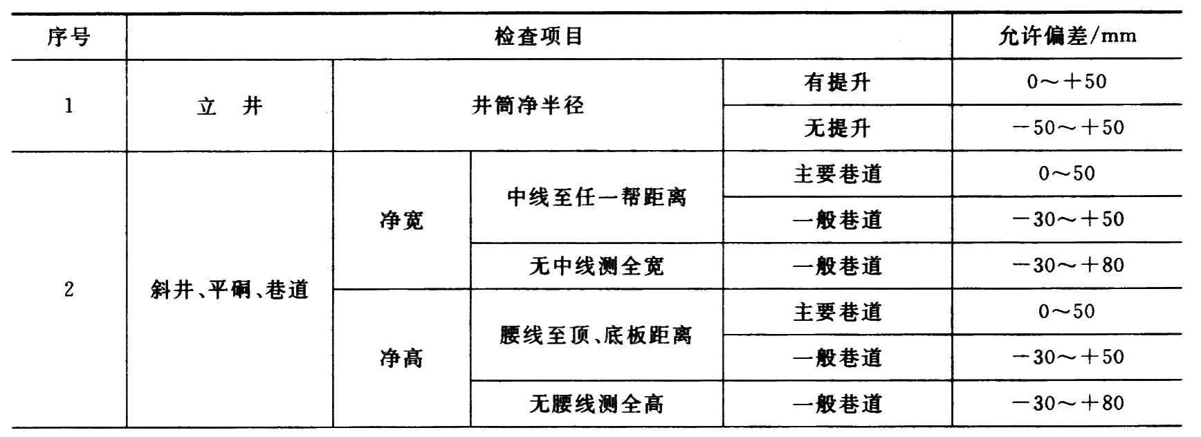 井巷混凝土、钢筋混凝土支护工程的断面规格允许偏差