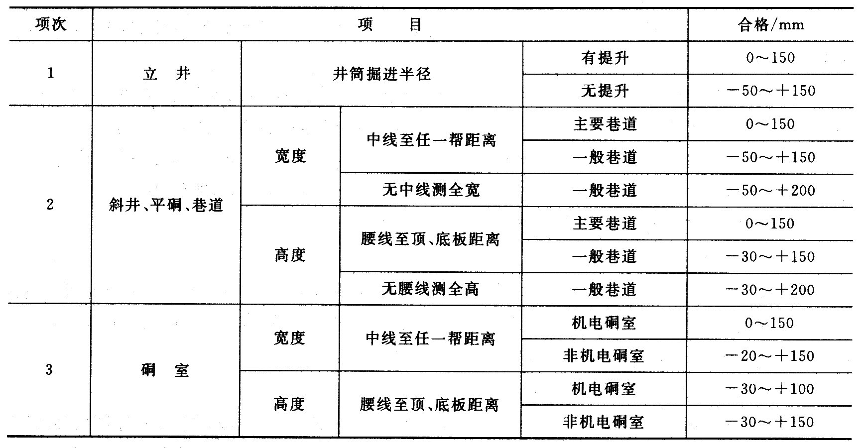 锚杆、锚网、锚网喷及喷射混凝土支护工程的断面规格允许偏差2
