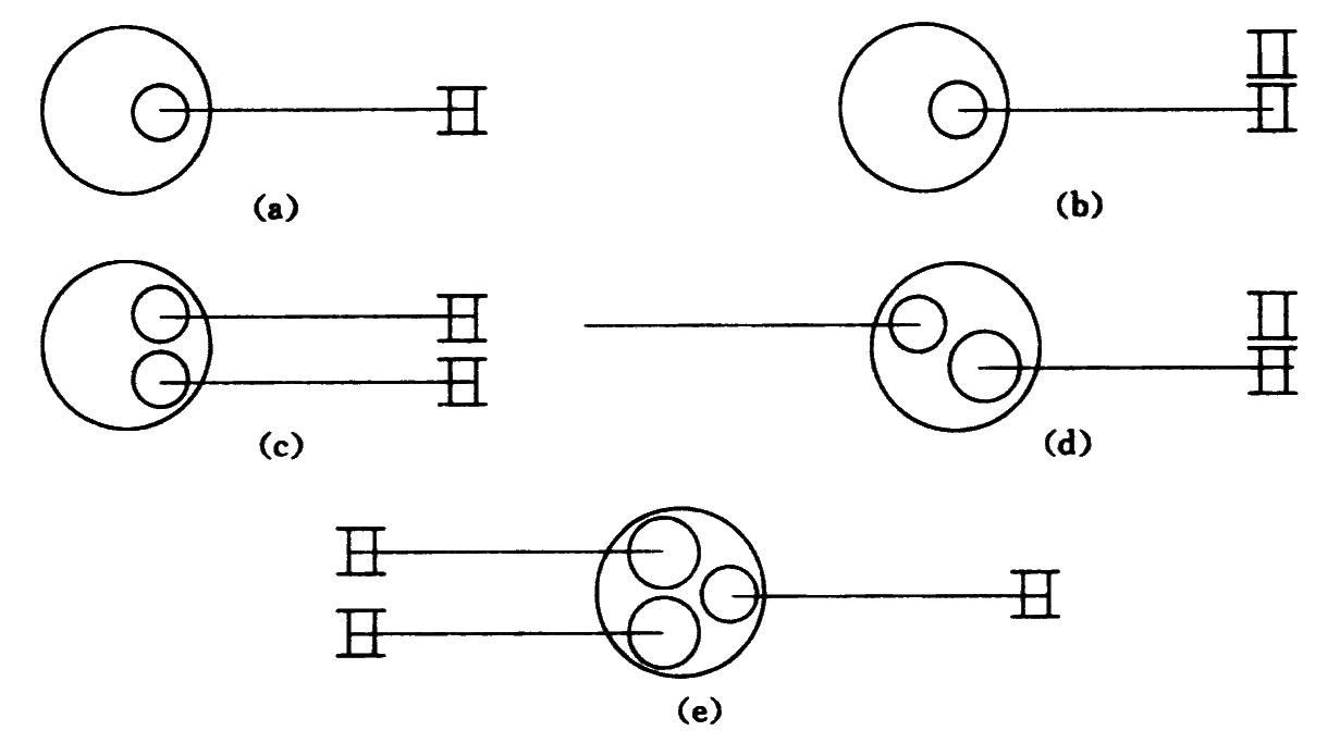 (a) 木罐道;(b) 钢轨罐道;(c) 球扁钢组合罐道;(d) 槽钢组合罐道;(e) 整体轧制罐道;(f) 复合材料罐道