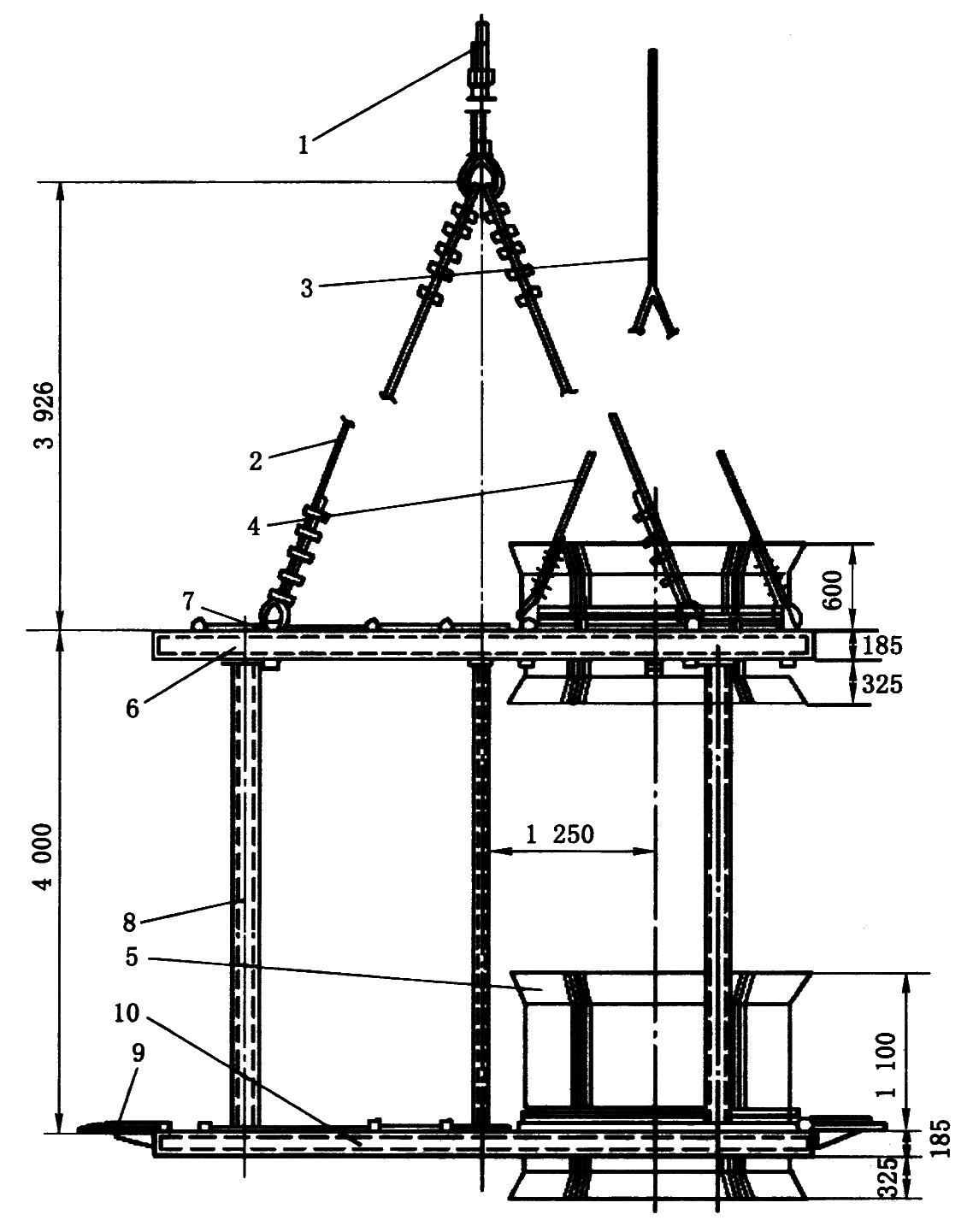 6—混凝土输送管天轮;7—安全梯天轮;8—风筒天轮;9—导向轮