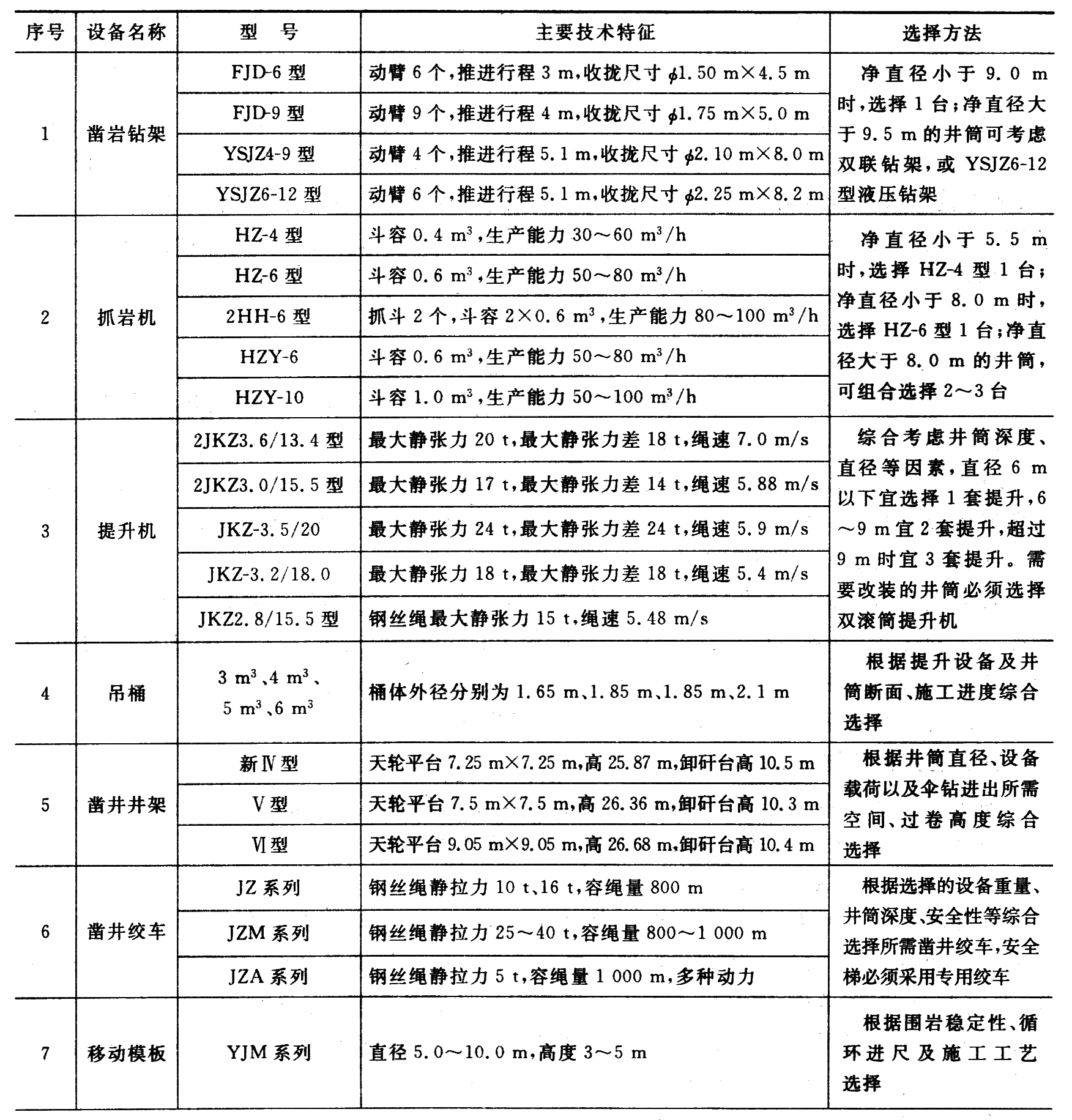 6—气动绞车;7—临时支护;8—抓岩机;9—吊桶
