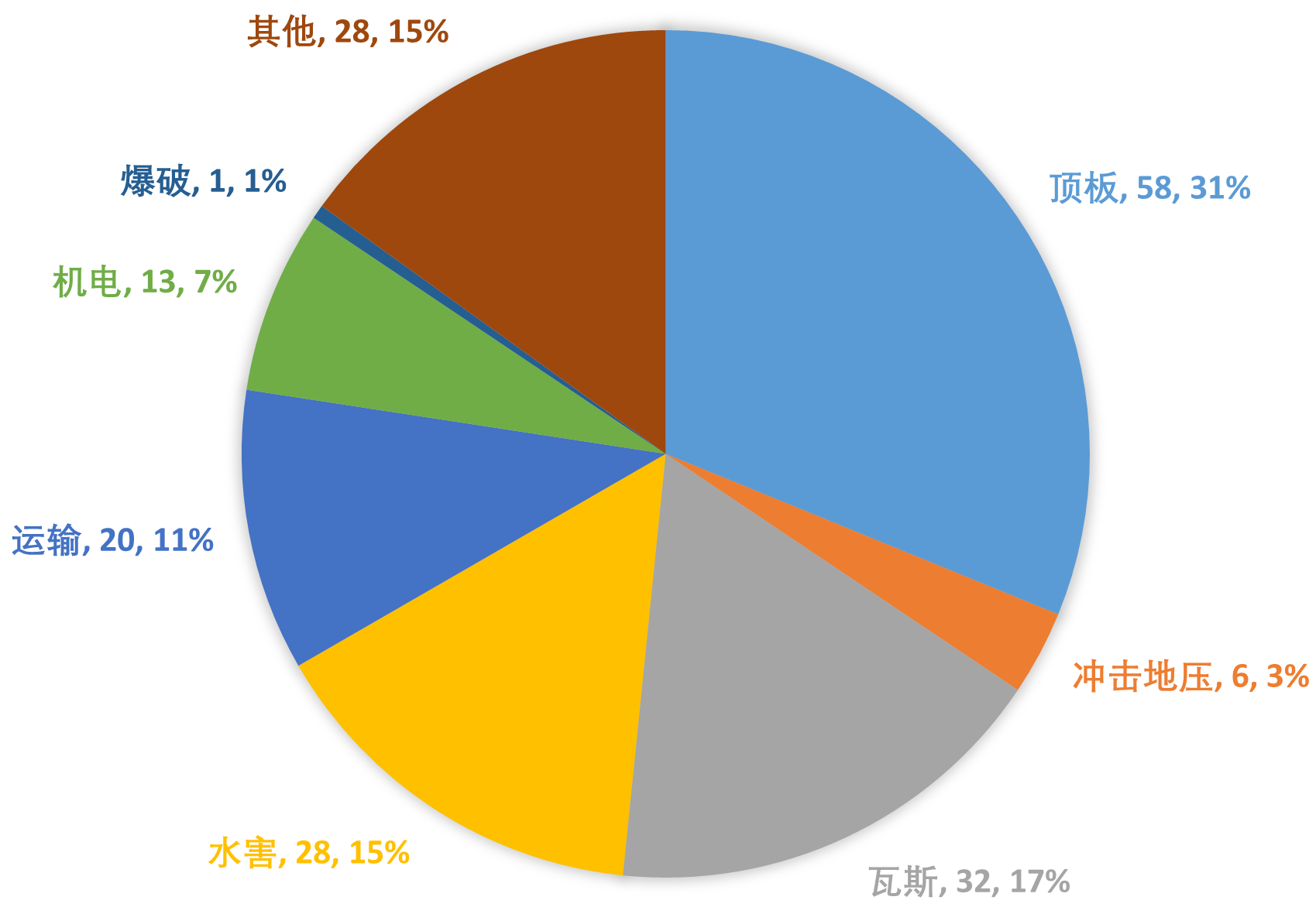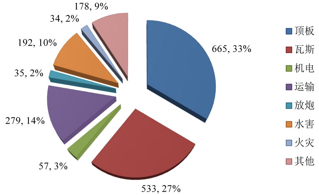 煤矿各类事故中,顶板事故(包括冒顶、片帮、支架垮倒、冲击地压等)发生次数最多,造成总伤亡最大。
