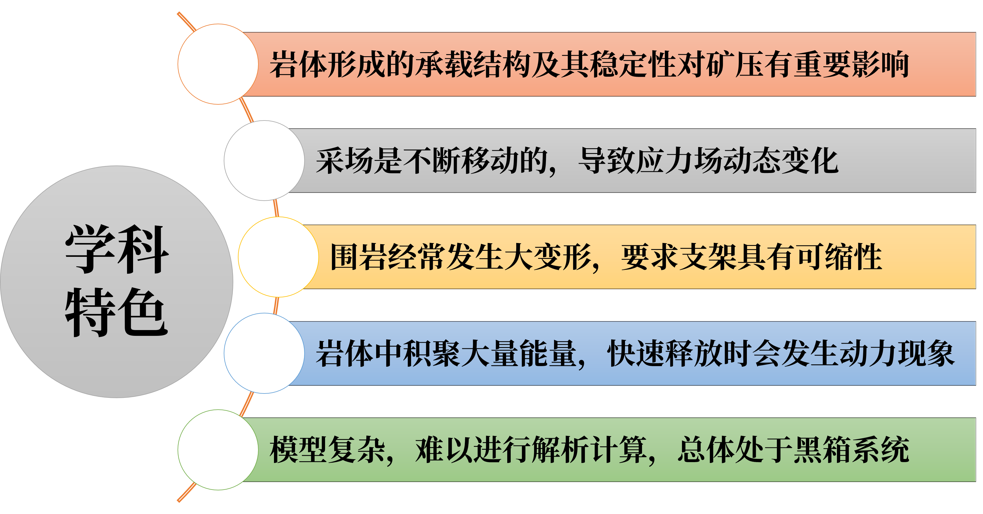 地下开采过程处在一个环境恶劣、条件多变、技术措施复杂的状况,因而,矿山压力与岩层控制的研究具有其独特的难点和学科特色。