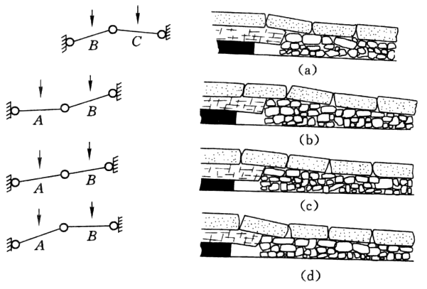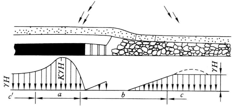这两种结构都可以看作是拱—梁组合结构。拱脚落在哪里,哪里出现支承压力。
