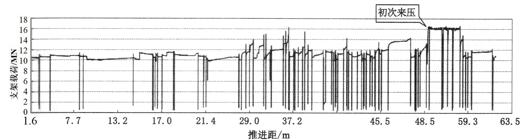 周期来压的主要表现形式:顶板下沉速度急剧增加,顶板的下沉量变大;支柱所受的载荷普遍增加;有时还可能引起煤壁片帮、支柱折损、顶板发生台阶下沉等现象。如果支架参数选择不合适或者单体支柱稳定性较差,则可能导致局部冒顶、甚至顶板沿工作面切落等事故。