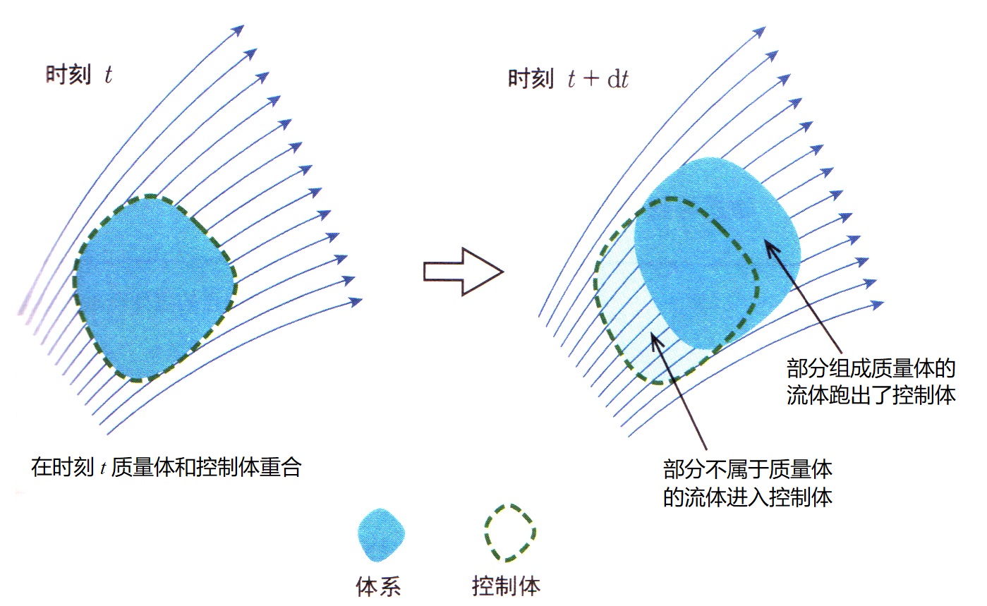 经典的力学和热力学定理都是建立在闭系统上的,因此很容易在质量体上建立有限体的流体动力学方程,但是质量体是变形系统,质量体上的动力学方程在实际应用时很不方便。为此需要有一种方法把建立在质量体上的动力学方程变换到控制体上去。
