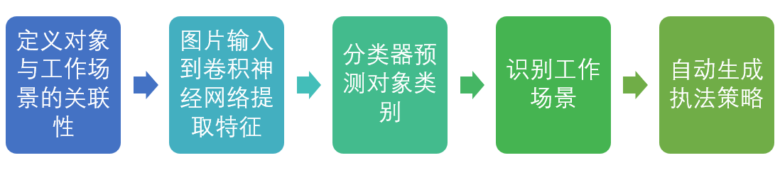 利用深度神经网络学习,对图片、视频、场景以及实物设备进行智能识别(所谓“感知”),提取信息特征,进而自动生产执法策略,引导辅助执法人员的执法过程。