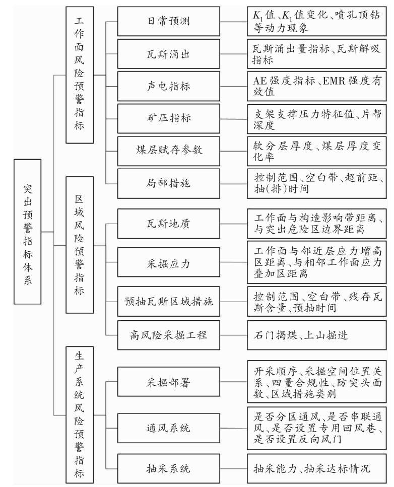 根据煤与瓦斯突出的机理和影响因素,通过建立煤与瓦斯突出预警模型和指标,可对煤与瓦斯突出危险性实施分区域、分等级预警。