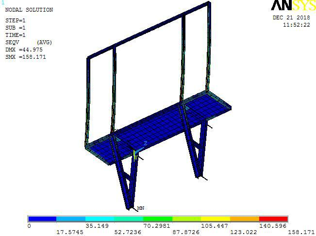 外挂脚手架的稳定性是衡量施工安全的一个重要指标。使用 Ansys 软件构建脚手架的模型,并模拟得出其受力云图,从中可以找出容易导致脚手架失稳的薄弱部位。