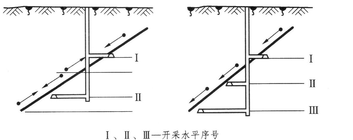 开采水平的数目首先要解决能否采用下山开采的问题。再确定阶段的数目和一个开采水平服务的阶段个数。