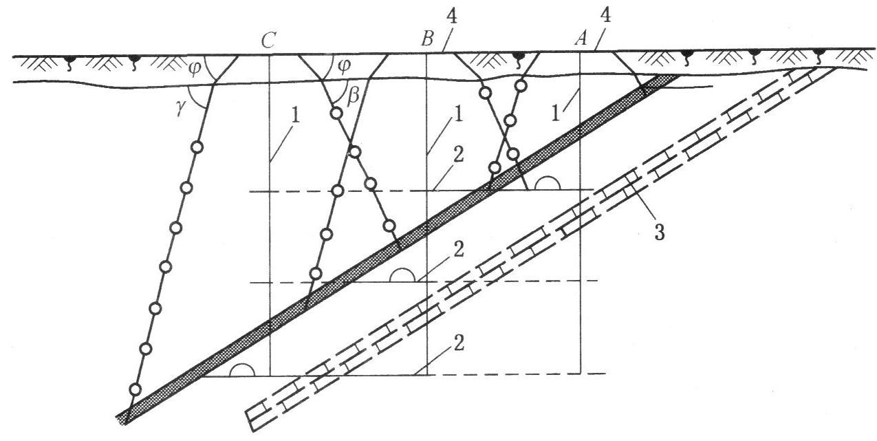 1-主井;2-副井;3-暗立井;4-暗斜井