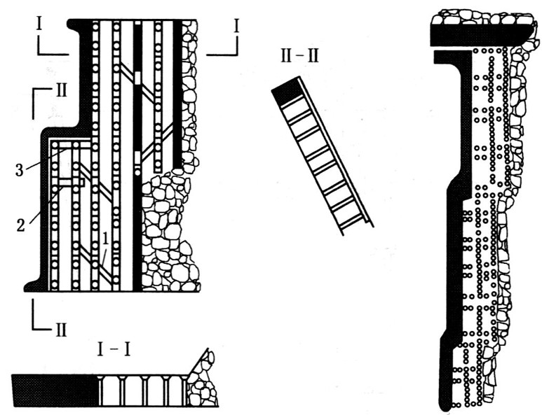 1-工字钢;2-钢丝绳;3-荆笆条;