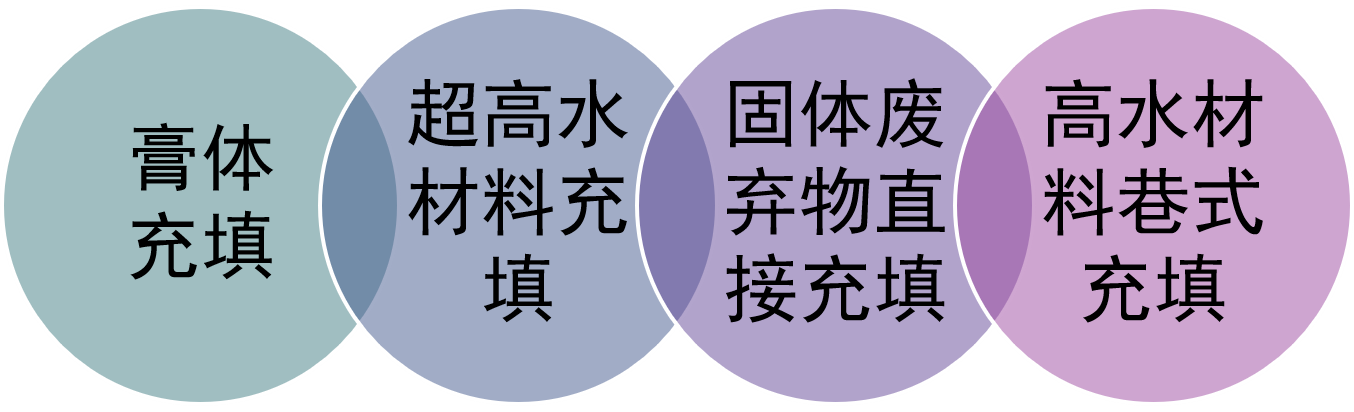 - 主要采用粉煤灰、石灰、脱硫石膏、水泥、矿渣粉等矿物废料作为充填材料,在地面制成水灰比(0.6~0.8):1,质量浓度为55%~62%高含水浆体材料,一般通过管道自流输送至井下。