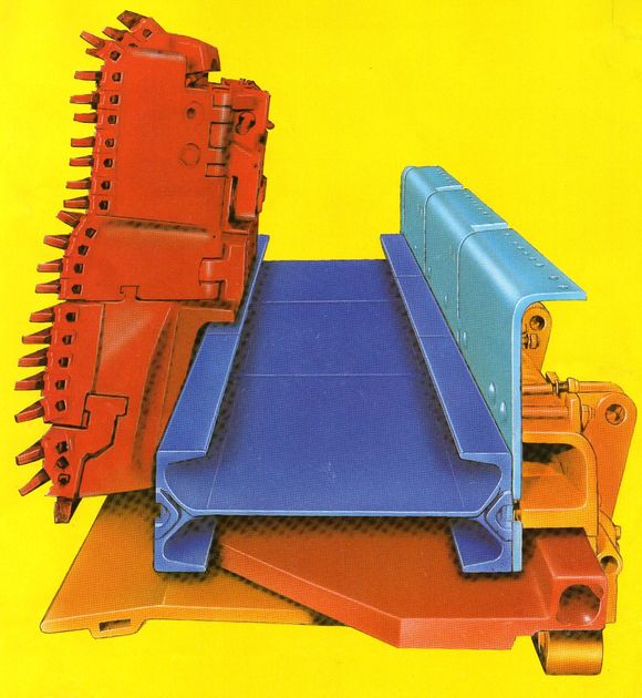 - 与短机身采煤机配套使用的SGI-730/90W型工作面刮板输送机的特点是:机头和机尾短而矮;在机头和机尾的侧帮上也设有齿轨。从而使采煤机能直接开到机头或机尾上部,滚筒能割透端部,进人巷道。这样,采煤机可从巷道人刀,不需专开切口。