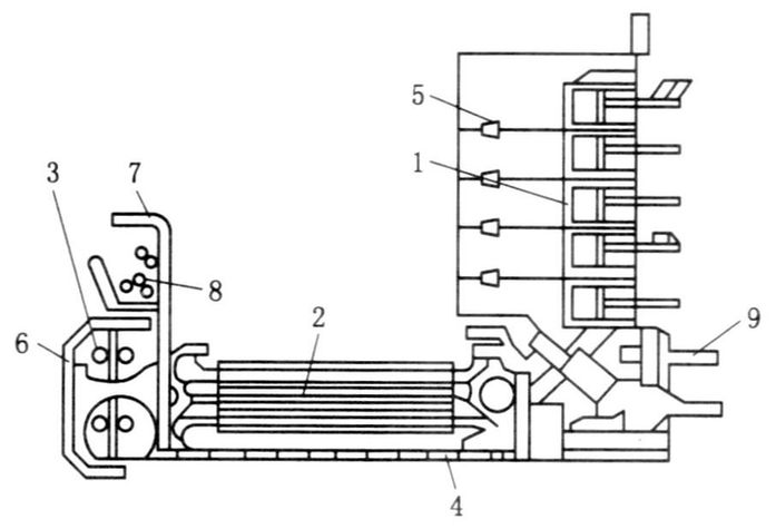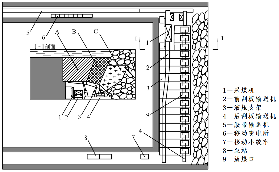 6-区段运输巷;7-区段回风巷;8-采区回风石门;9-采区煤仓