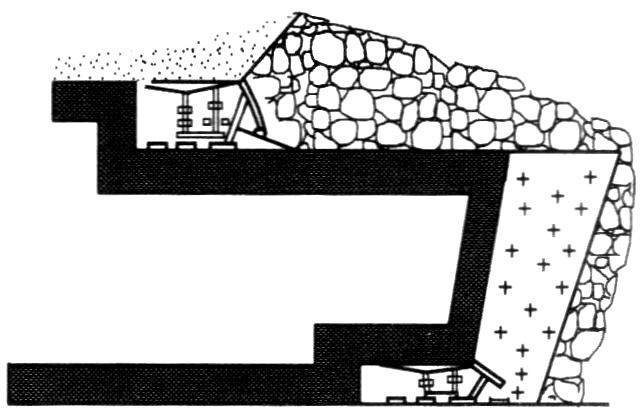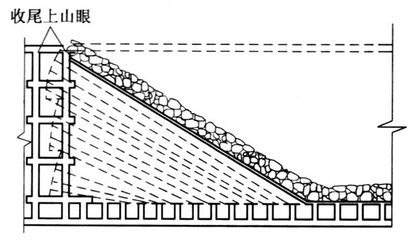 - 正常回采:在正常回采过程中,除了在掩护支架下回采外,同时要在回风平巷中扩巷、挖地沟,加长掩护支架,以及在工作面下端的顺槽中拆除支架。在支架下采煤,目前主要用打眼爆破。