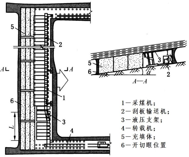- 准备回采:主要是在回风平巷内安装掩护支架,并逐步下放成为伪倾斜工作面,为正常回采做准备。
