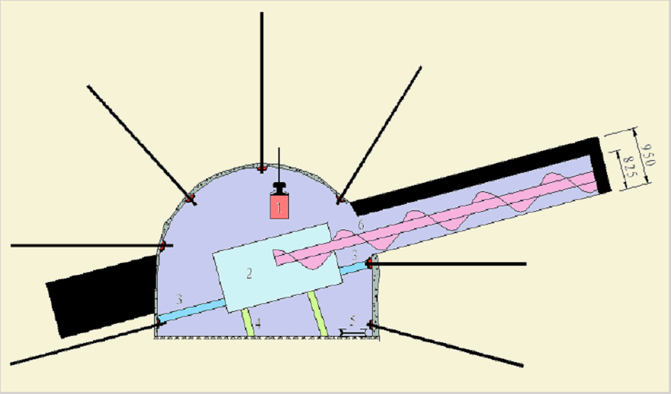 1-采区运输石门;2-采区溜煤眼;3-采区行人眼;4-采区运料眼;